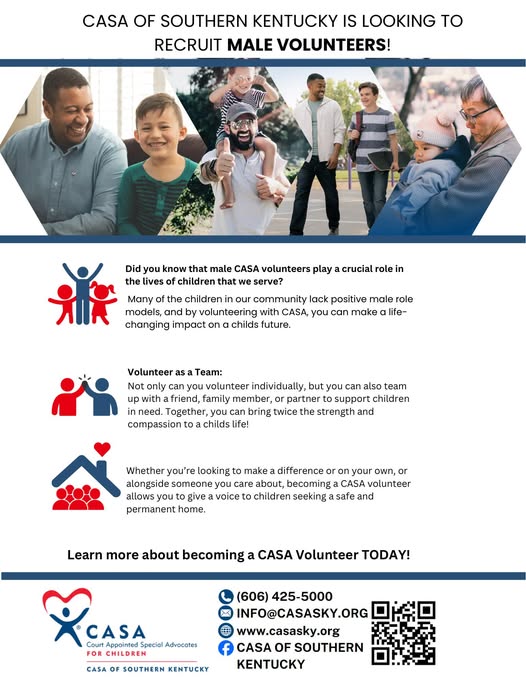 Male volunteers play a vital role in shaping brighter futures for children in need. At CASA of Southern Kentucky, we’re seeking compassionate individuals ready to make an impactful difference. We